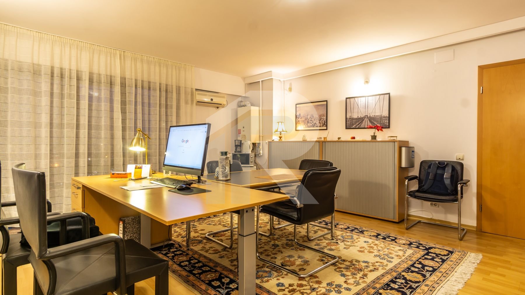 Incalzirea si apa calda sunt asigurate cu centrala termica proprie pe gaze, iar racirea cu 1 aparat de aer conditionat. Ferestrele sunt din aluminiu cu geam termopan.
