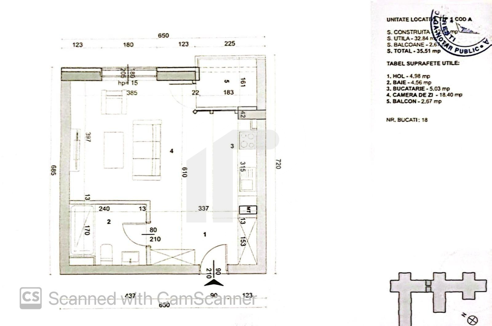 • S. utila totala:35.51 mp