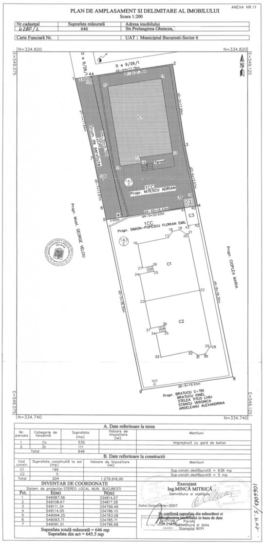 Terenul proprietatii este in suprafata de 545mp.