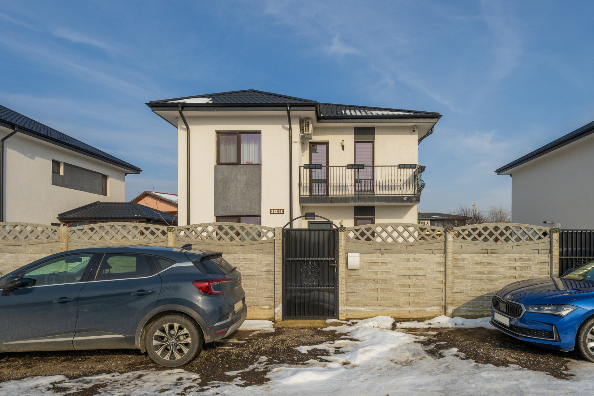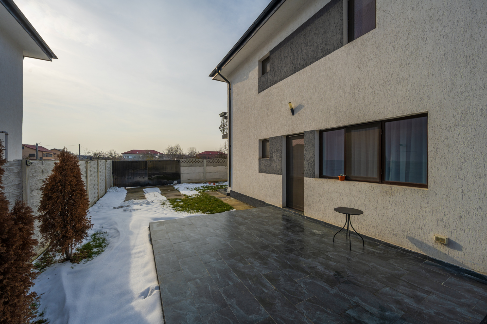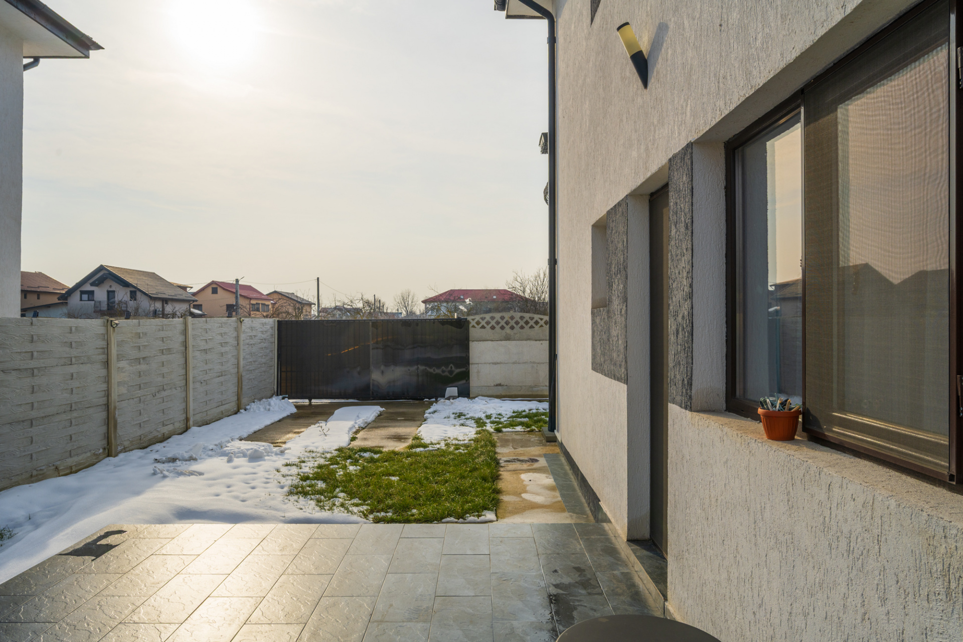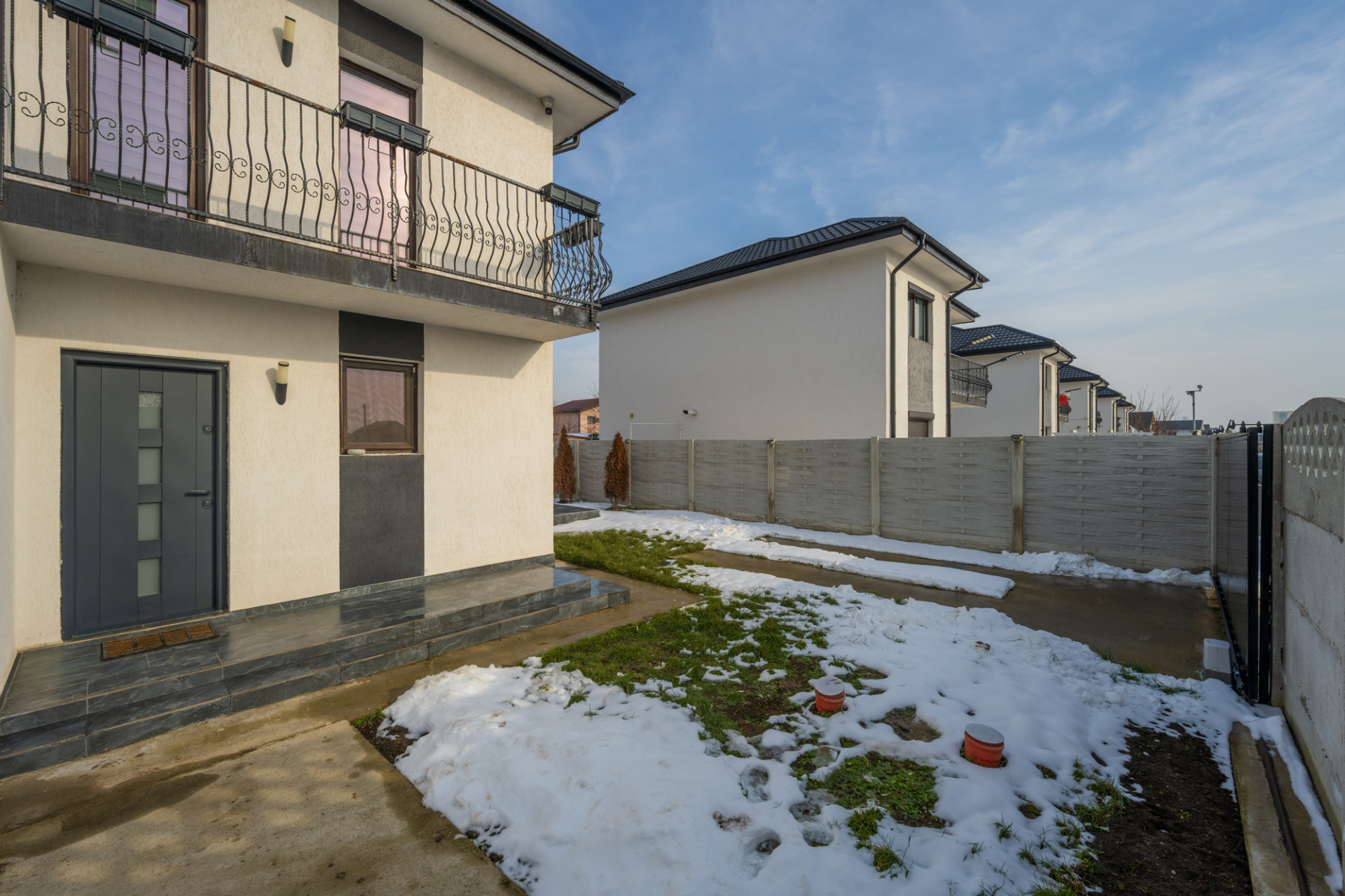Curtea este imprejmuita cu gard din beton, are poarta actionata electric si 1 loc de parcare amenajat in curte.