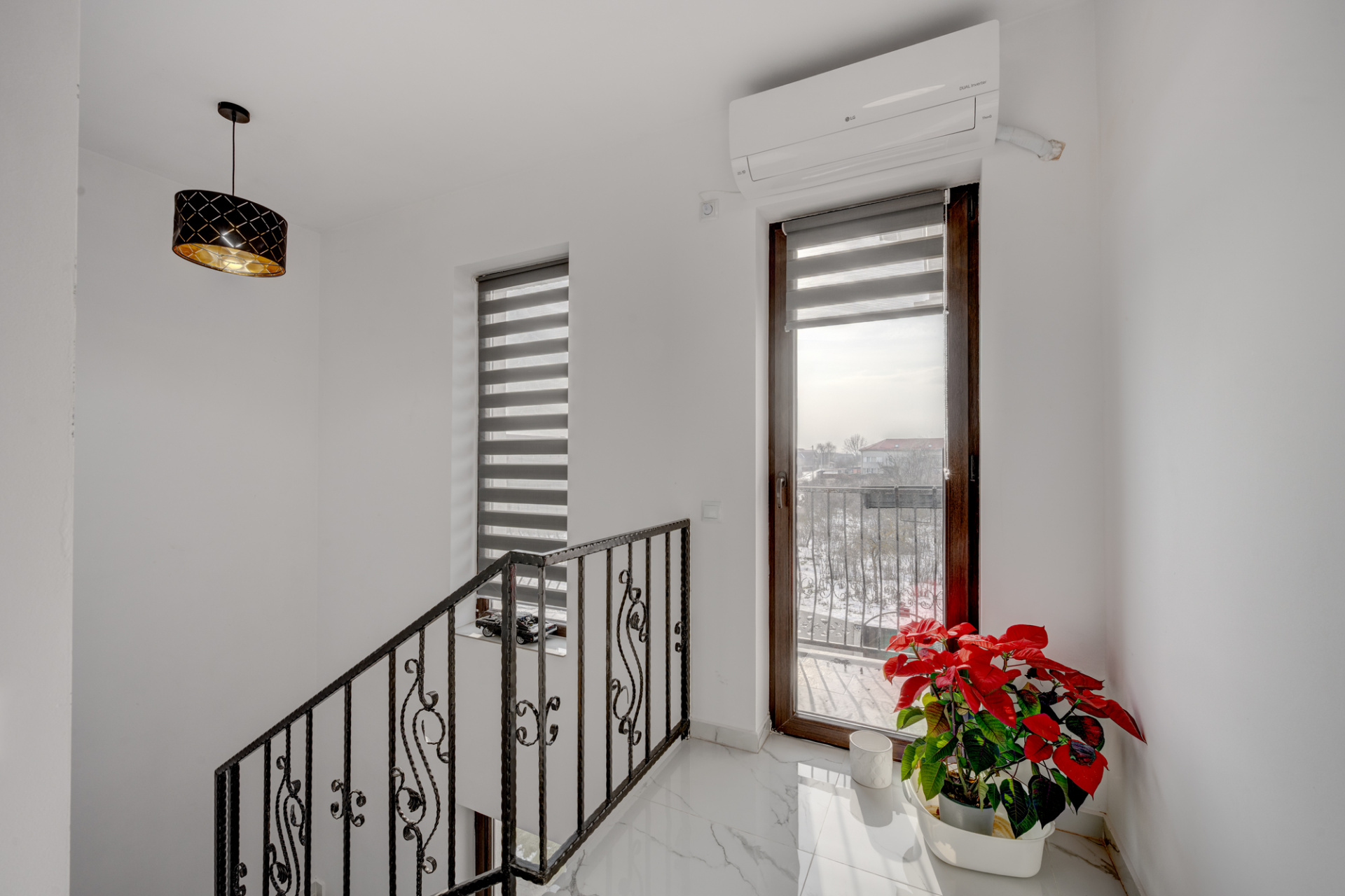 Pentru incalzire este instalata centrala termica pe gaz, iar pentru racire s a instalat un aparat de aer conditionat ( pe holul etajului).