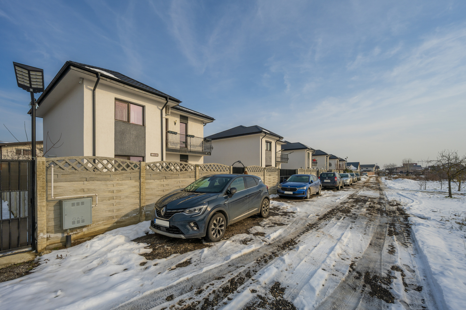 Casa face parte dintr-un proiect de 8 case individuale, finalizate in anii 2023-2024. Este construita pe un lot de teren in suprafata de 265 mp si este dispusa pe parter si etaj si beneficiaza si de un pod pentru depozitare. Casa are o suprafata totala de 129,5 mp, din care 114 mp sunt utili.